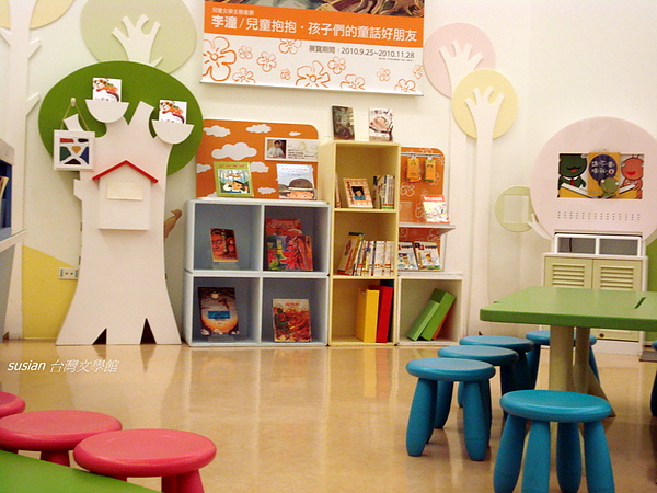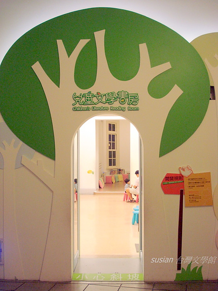 走入文學館兒童書房是在右手邊,大樹狀的門很可愛